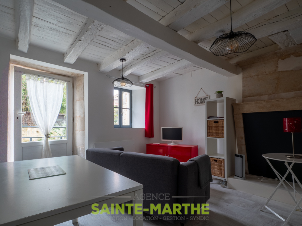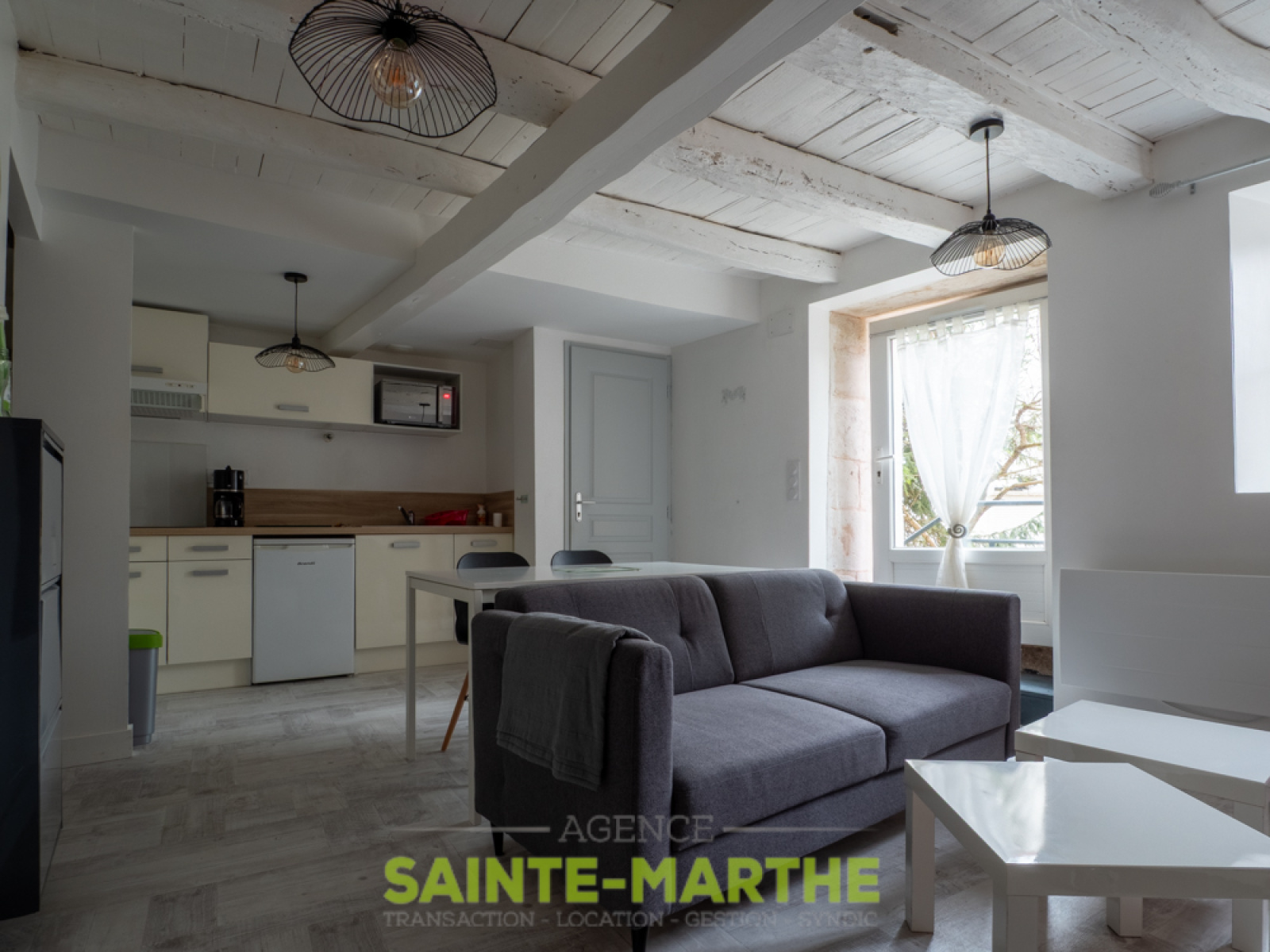 Appartement meublé sur cour comprenant salon et coin cuisine avec réfrigérateur, plaques, hotte et micro-ondes, chambre avec salle d'eau, wc