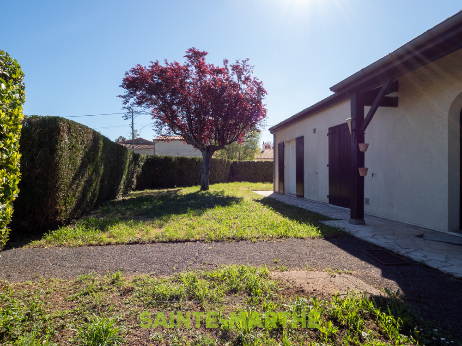 Elle se compose d'une entrée, WC, cuisine séparée et aménagée, séjour, 3 chambres dont 1 avec placard, garage et jardin.
