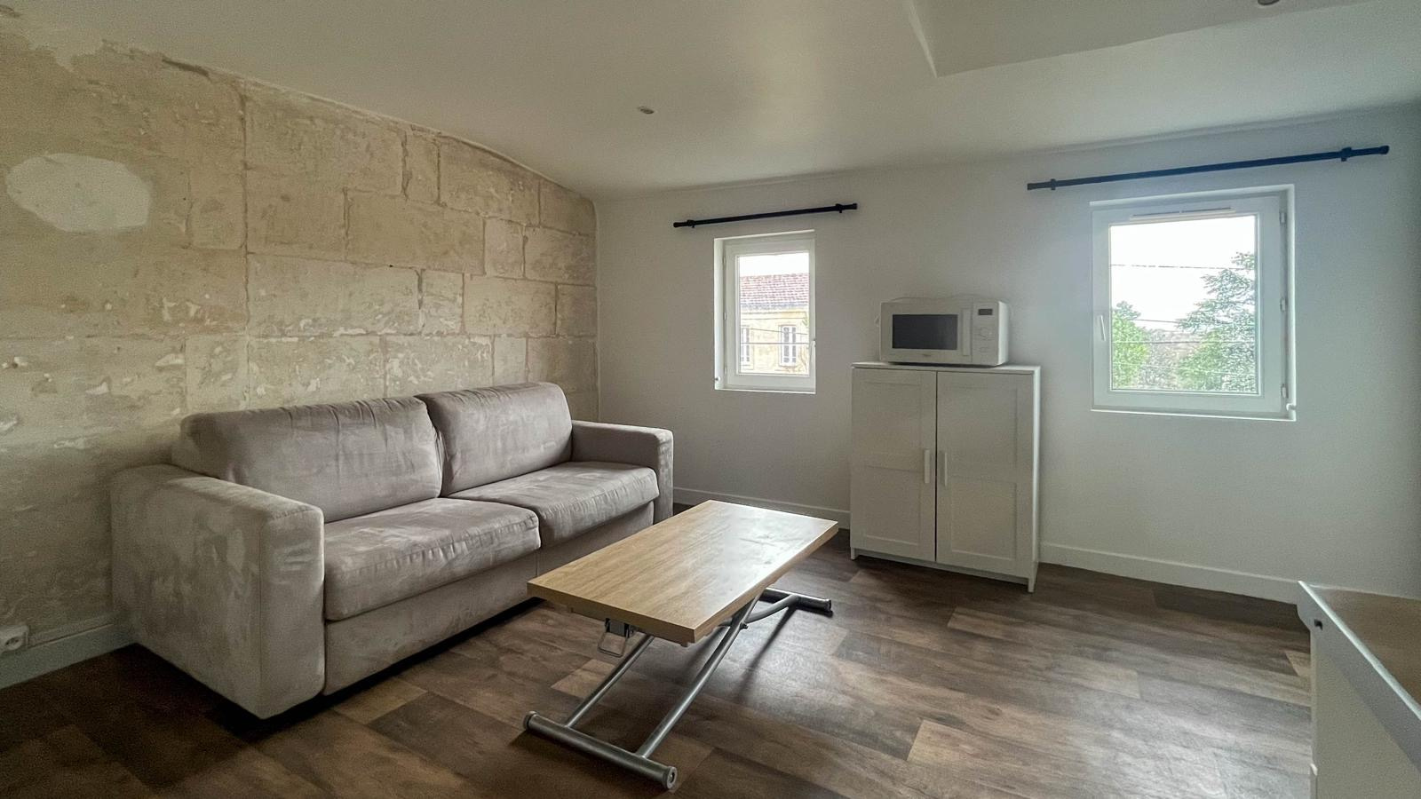 Entrée, cuisine ouvertue sur séjour, salle d'eau avec WC.