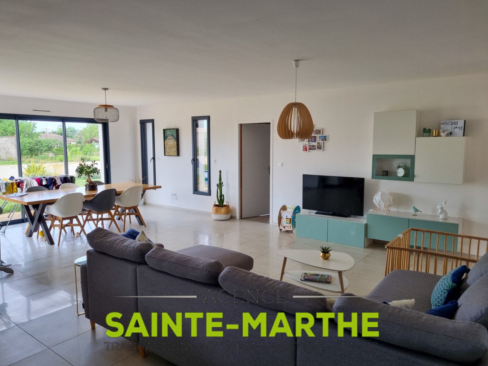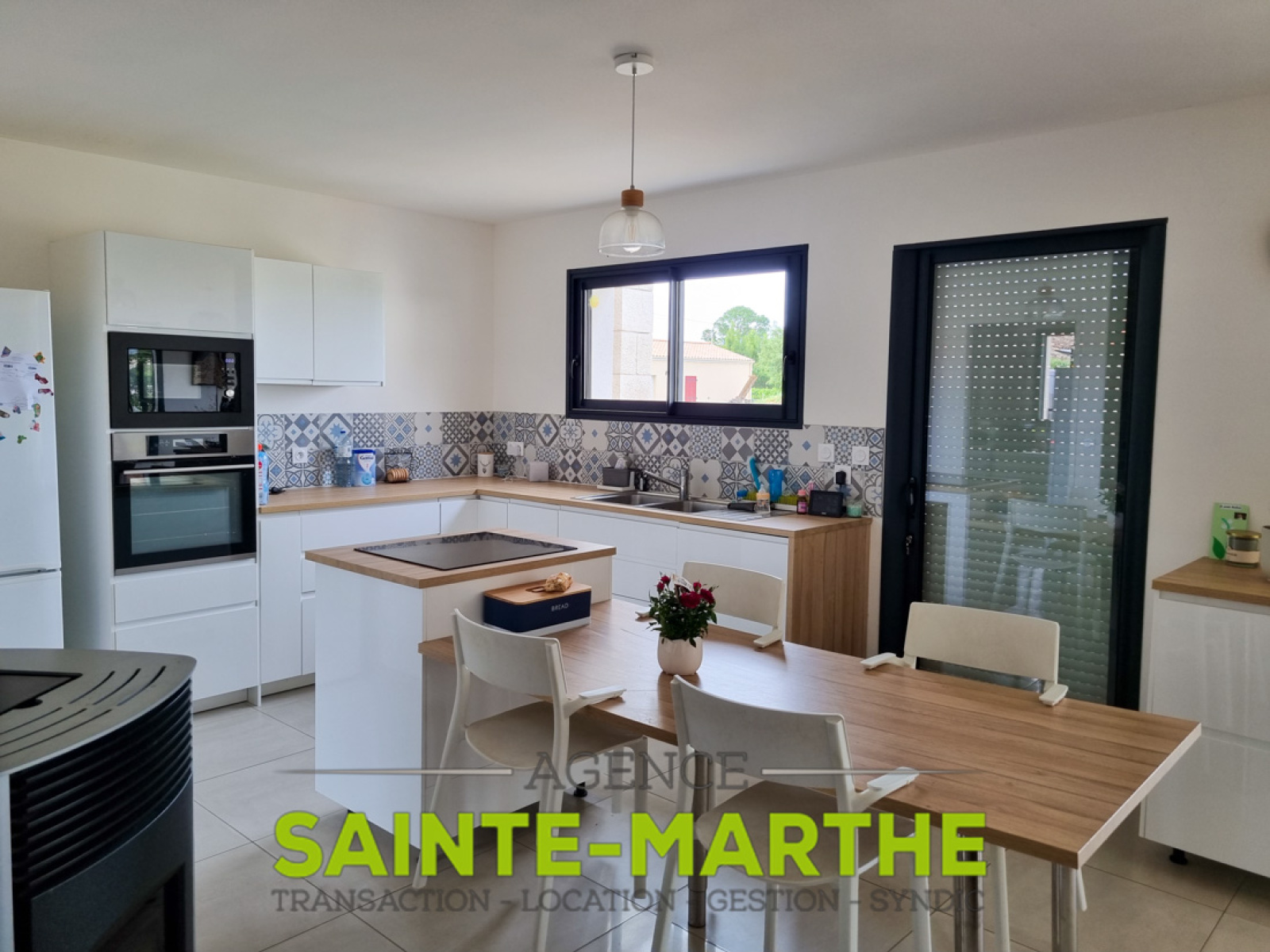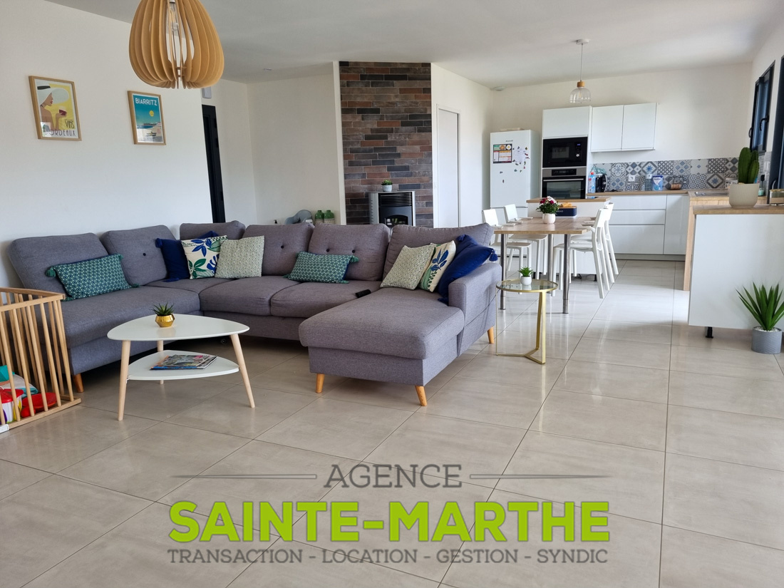 Maison de type 5 comprenant entrée, WC, pièce de vie avec cuisine ouverte équipée (plaque, four, micro-onde, lave-vaisselle), arrière cuisine, 4 chambres dont 2 avec placard, salle d'eau, dressing.