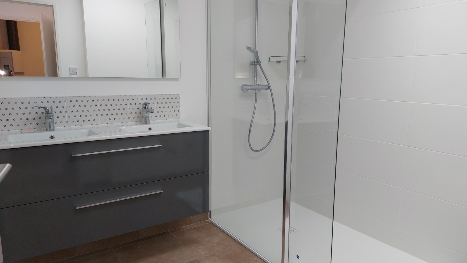 Dans le centre du village, au calme, pavillon de plain pied neuf comprenant entrée dans pièce de vie avec cuisine aménagée, dégagement, 2 chambres, SDE, buanderie.
