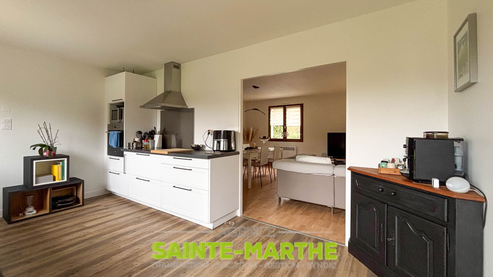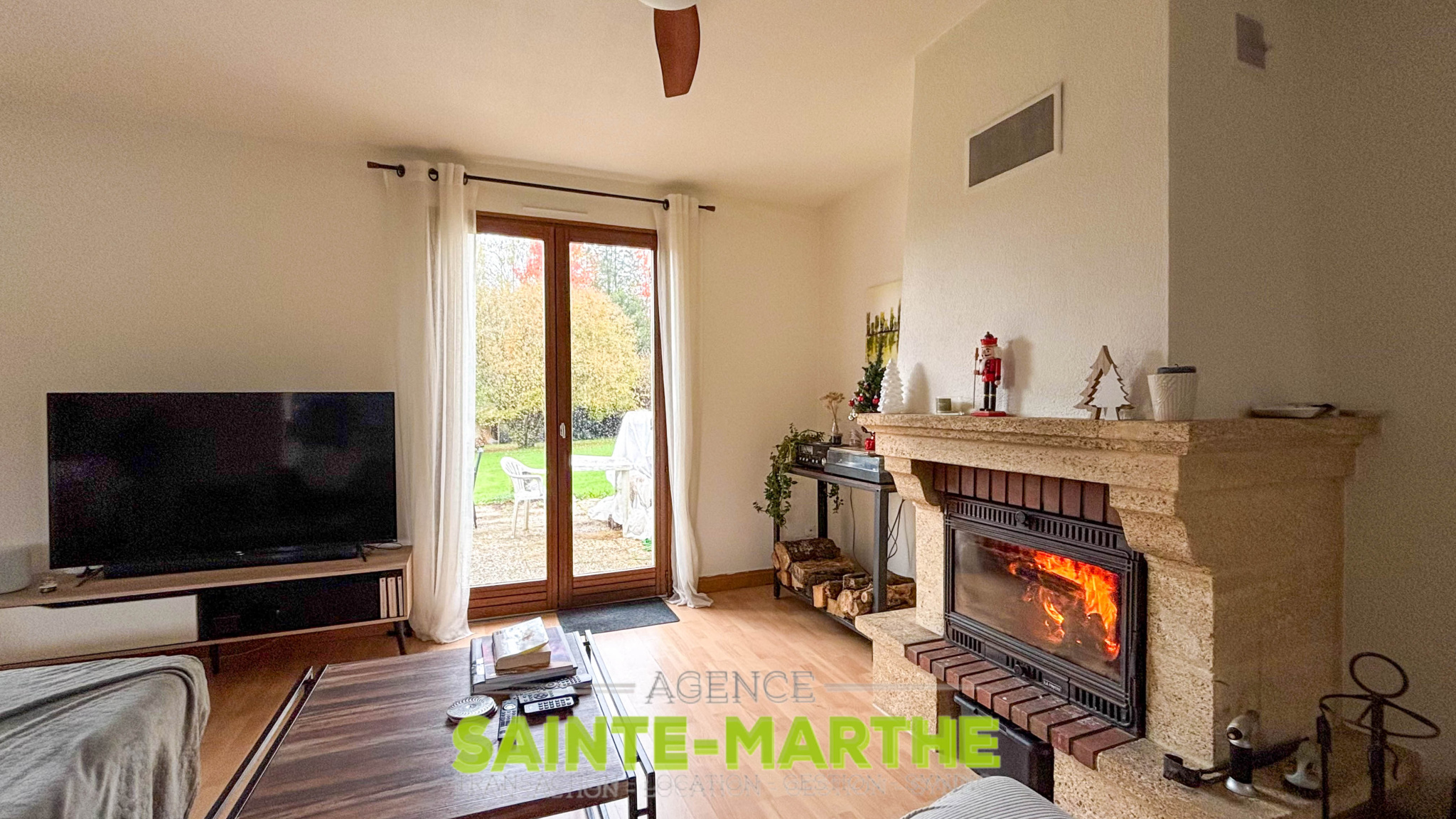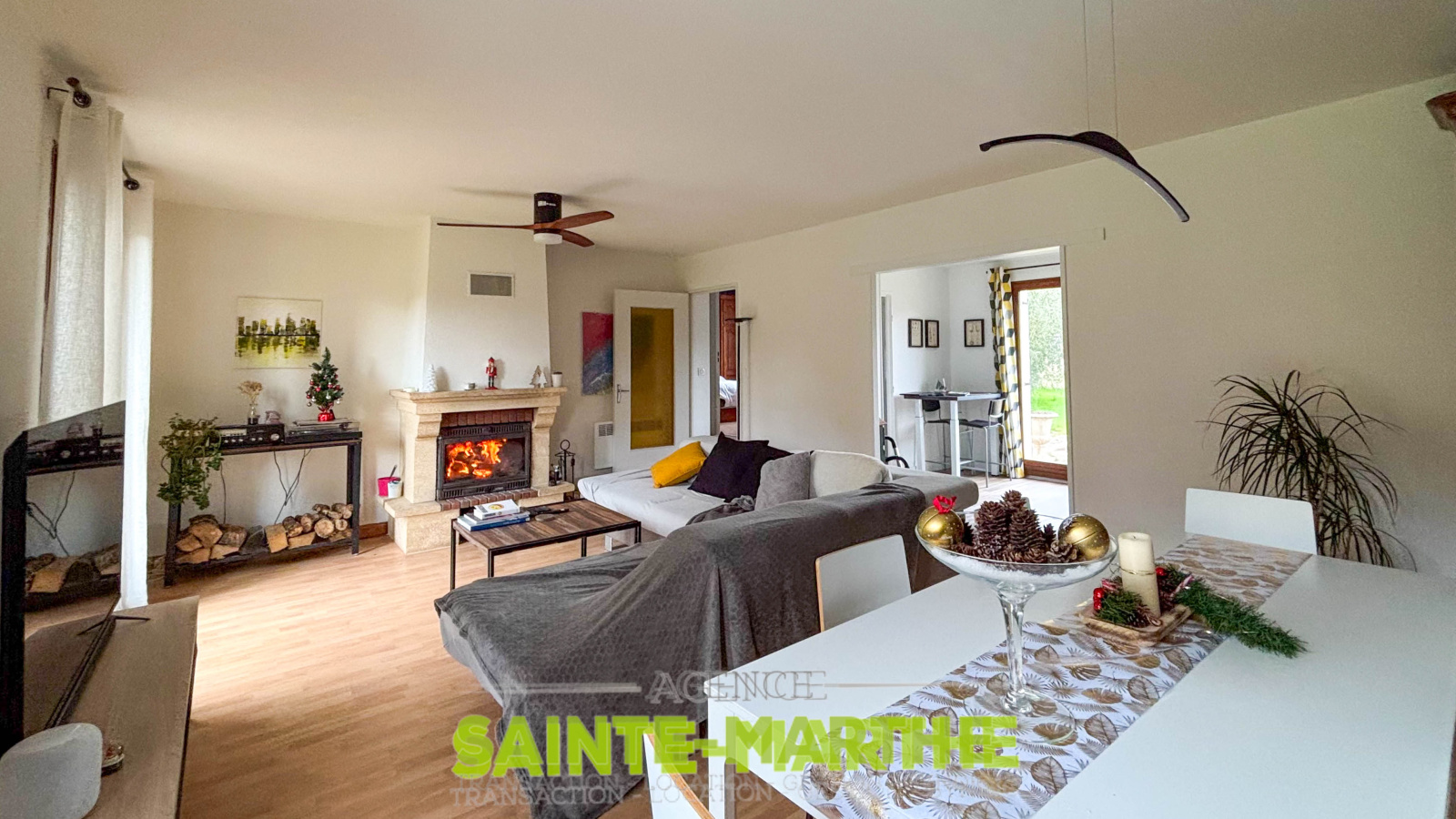 Une entrée, une cuisine aménagée et équipée récente, semi-ouverte sur un salon-séjour doté d’une cheminée. Le couloir dessert trois chambres dont deux avec placard, une salle de bains avec douche et baignoire, ainsi qu’un WC indépendant.