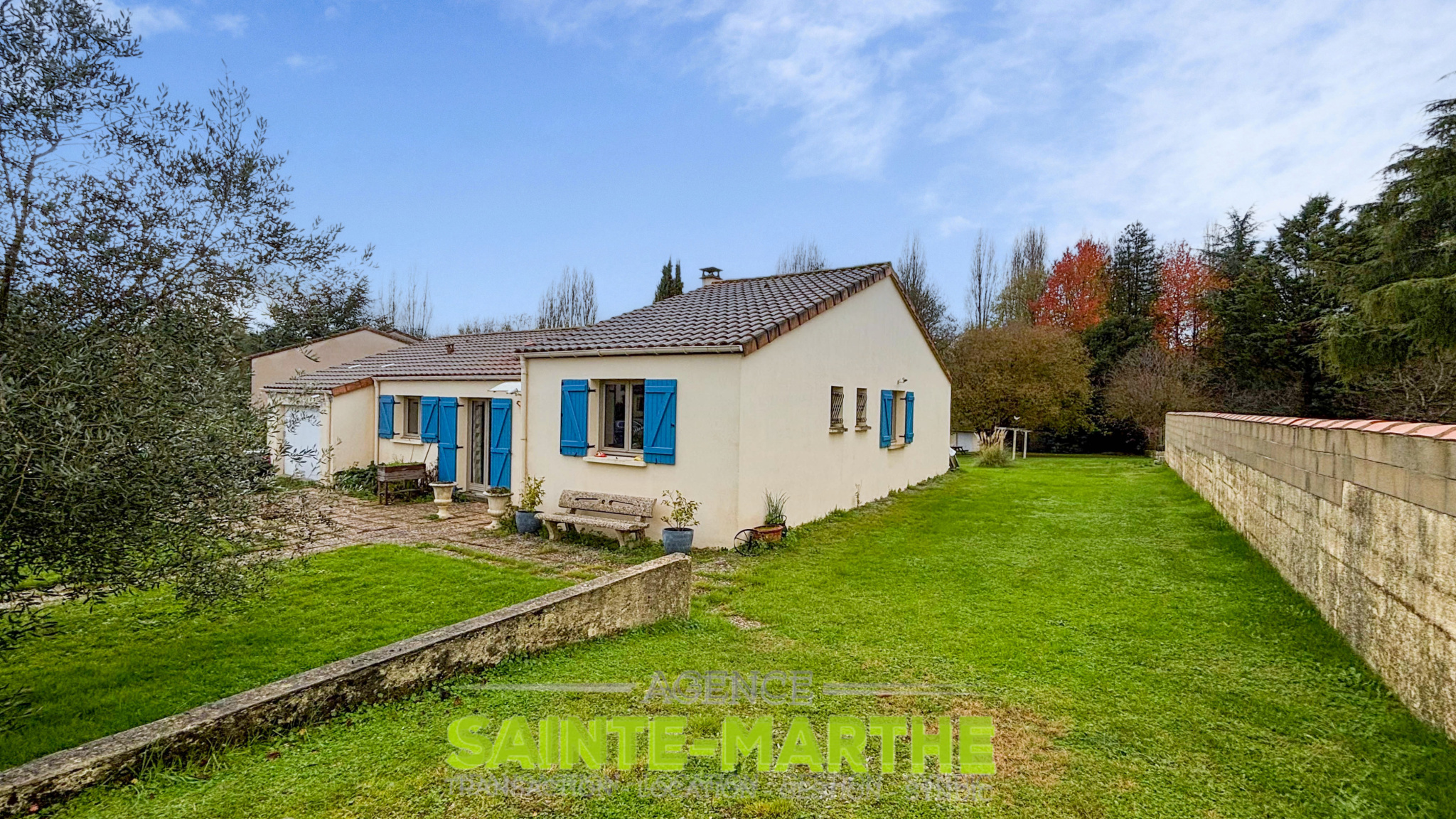 Deux garages (dont un au fond du jardin) avec espace buanderie complètent l’ensemble.