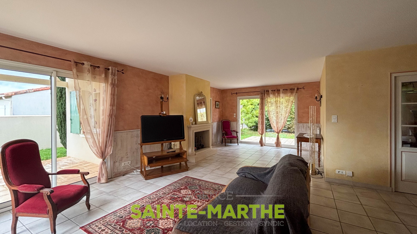 Entrée dans une belle pièce de vie traversante, cuisine séparée aménagée et équipée ouvrant sur un patio et arrière cuisine. La partie nuit se divise en deux espaces : un premier avec une chambre avec placard, un salle d'eau et wc, le second avec trois chambres, une salle de bains et wc.