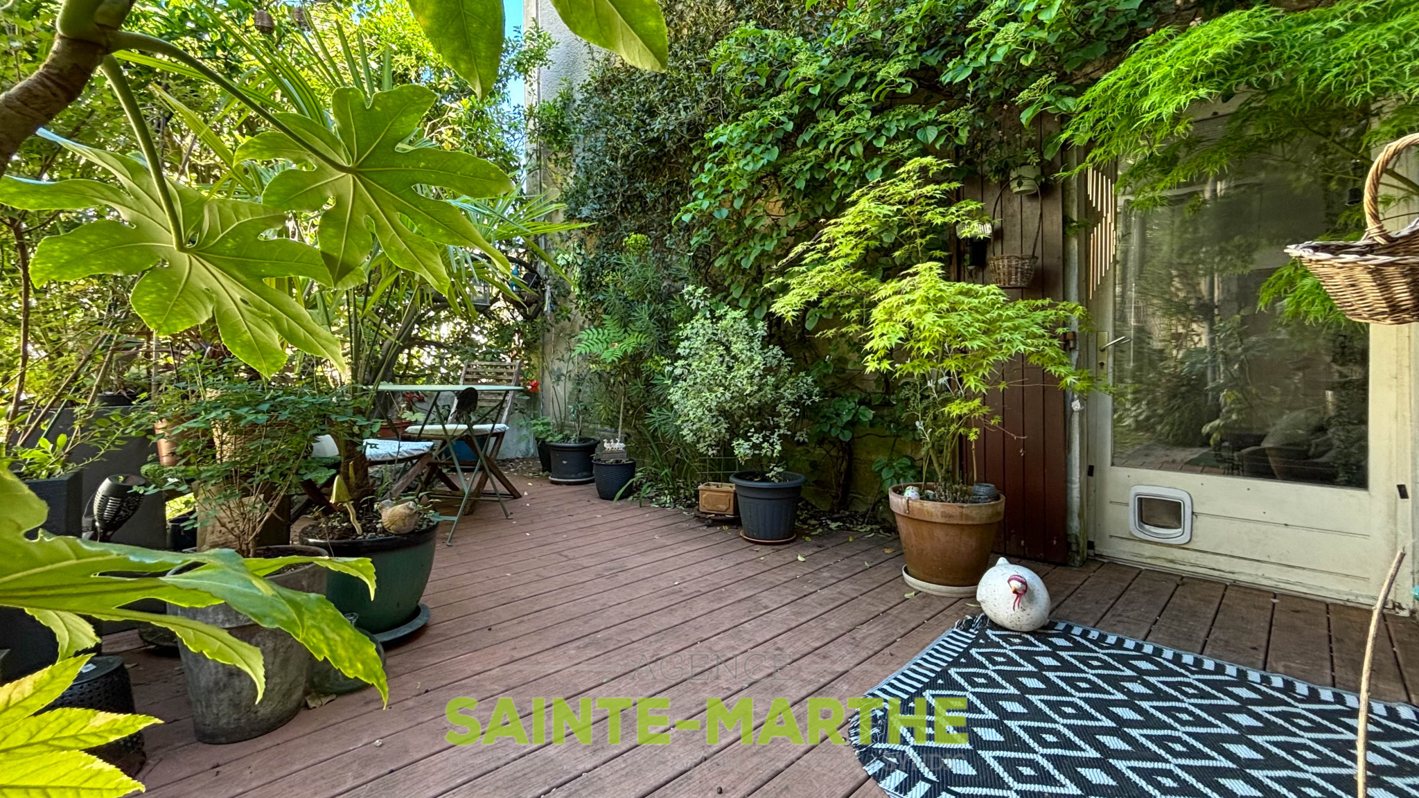 Vous profiterez également d’une belle terrasse accessible depuis la cuisine et le salon, ainsi que d’un jardin en hauteur accessible par quelques marches depuis le garage.