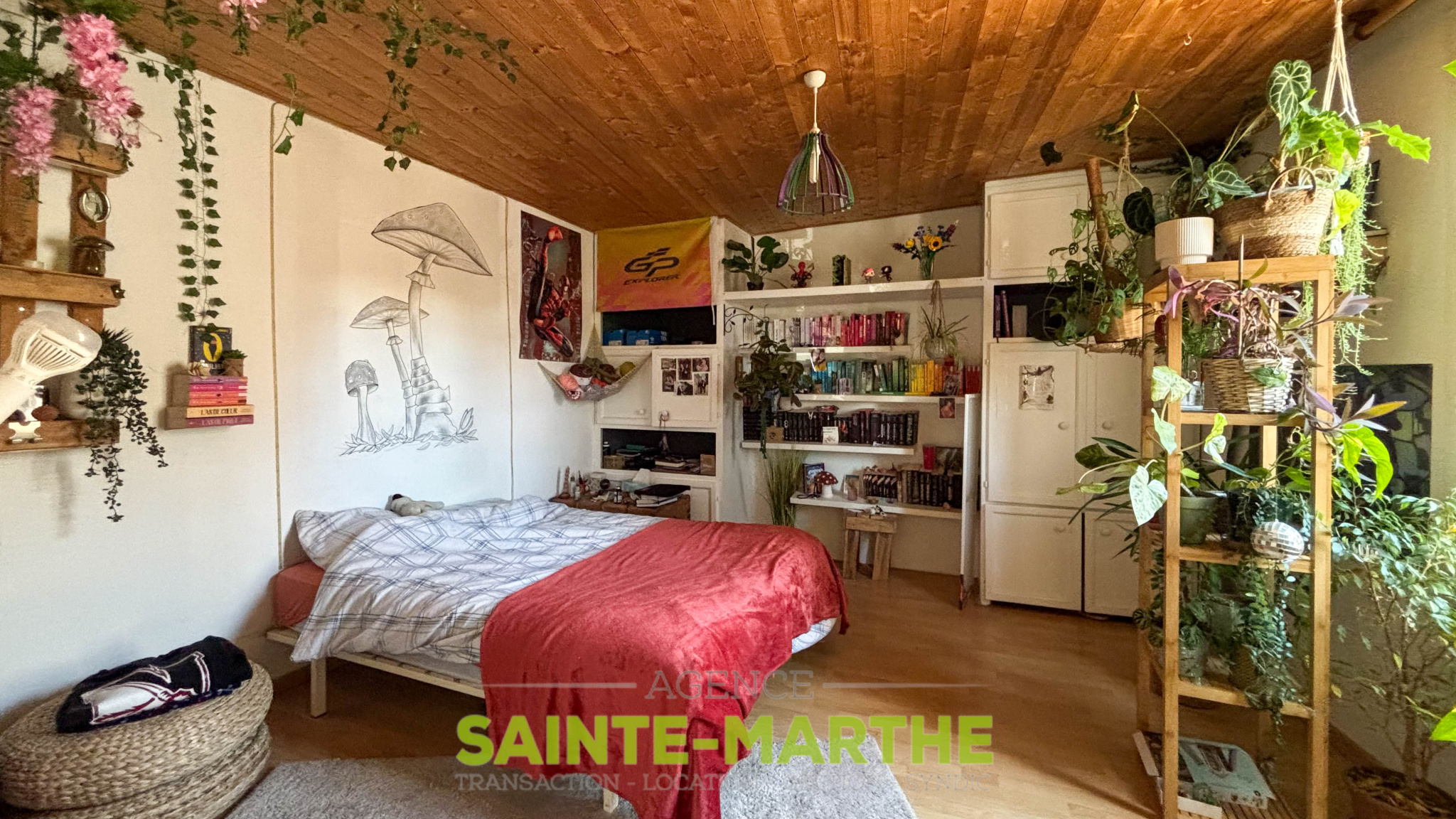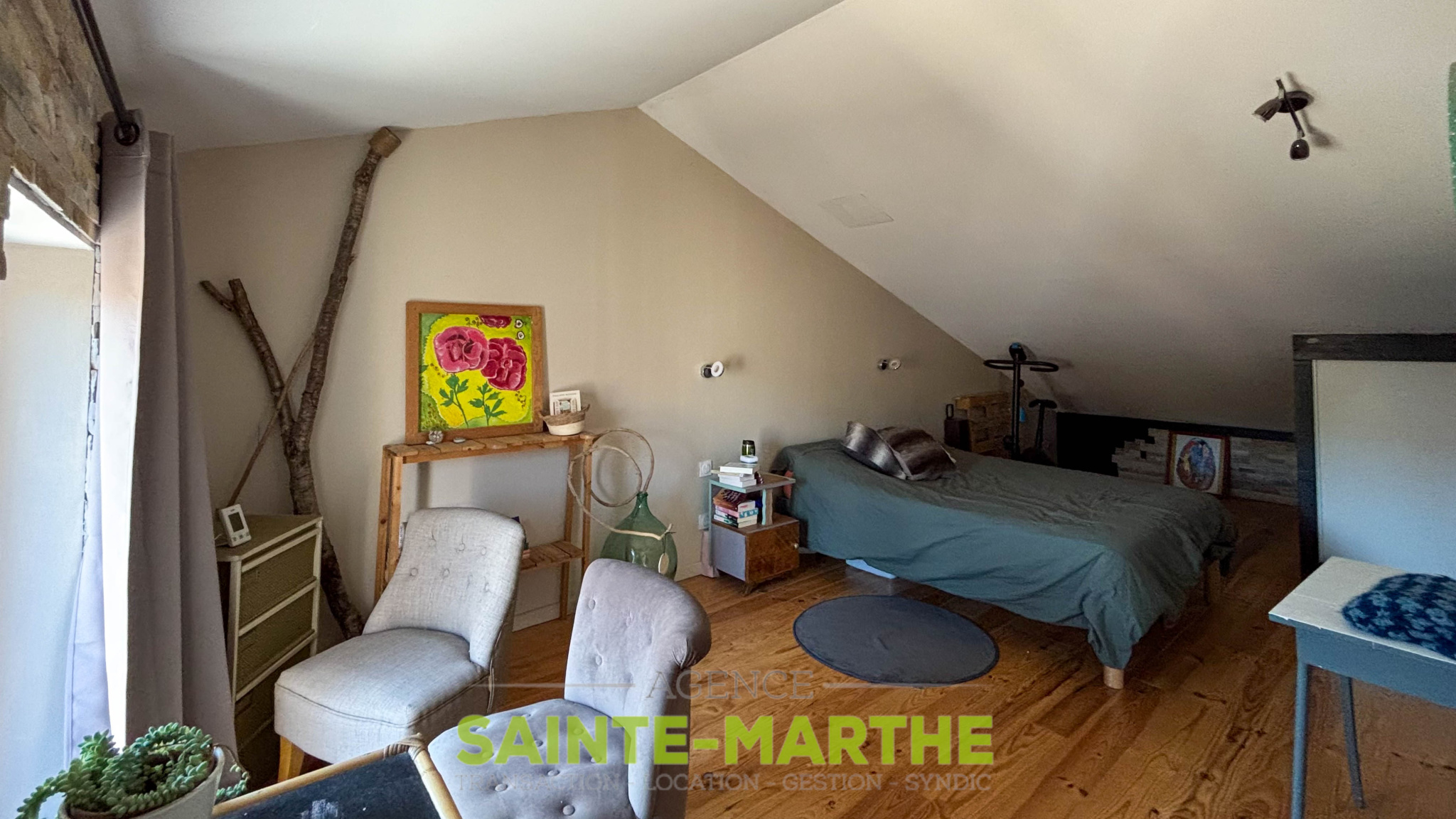 2e étage : grande chambre mansardée avec salle d’eau (travaux réalisés en 2020), ainsi qu’un grenier offrant un potentiel d’aménagement.